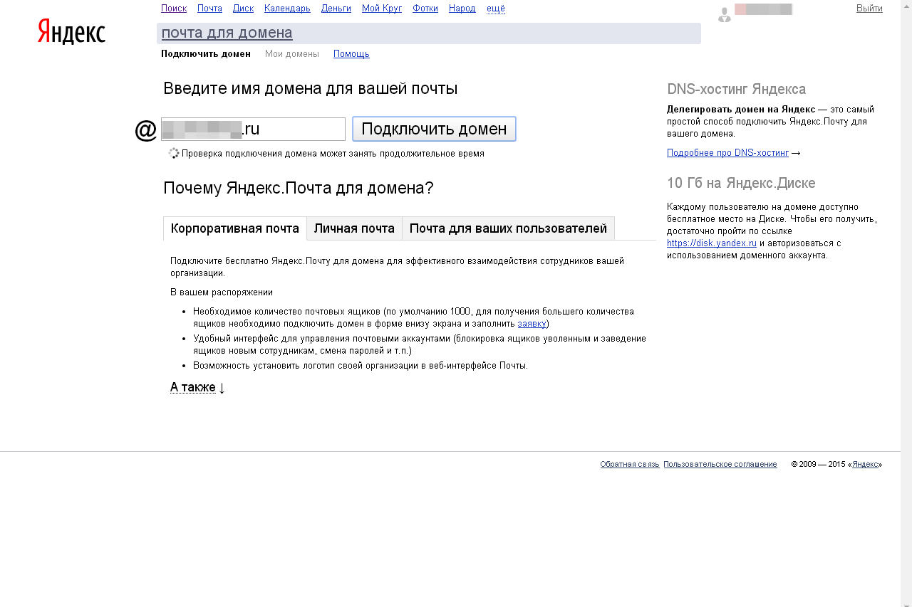 - Далее, необходимо подключить домен. Введите имя домена и нажмите кнопку Подключить домен.