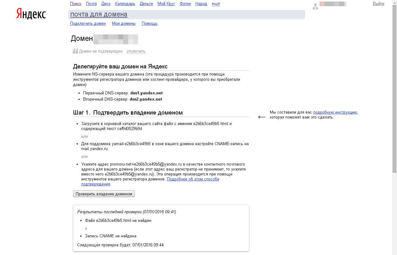 - После подтверждения прав на домен, дождитесь окончания делегирования домена на яндекс.