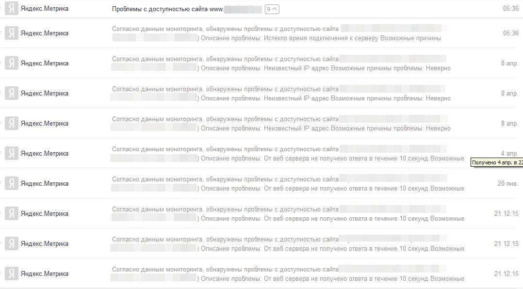 Периодически, такие сервисы уведомляют о недоступности сайта.