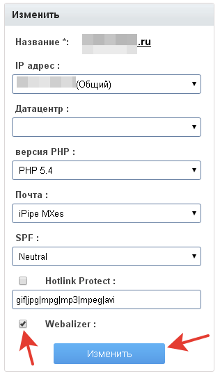 6. Для независимого получения статистики по сайту, необходимо активировать функцию сбора статистики скриптом Webalizer. Для этого: