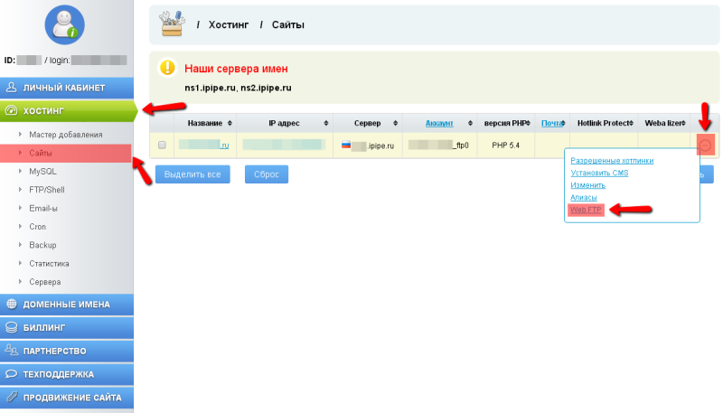 . Далее, в выпавшем списке нажмите на пункт – Web FTP.