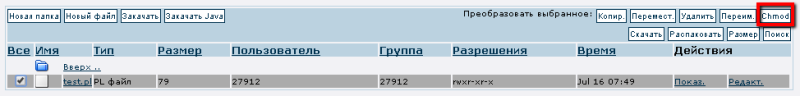 Значение прав доступа файла определяет тех кто имеет право на редактирование и исполнение файлов. Права доступа файла определяются в CHMOD файле. Права доступа можно изменить большинством популярных клиентов FTP или через, встроенный в панель управления, Web FTP.